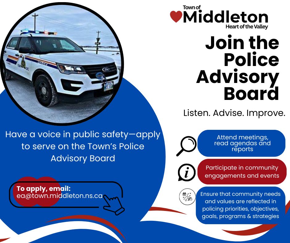 Continue ReadingMiddleton Town Council will be forming a Police Advisory Board on Monday, March 30, 2026. If you are interested in serving on this board, please submit your application no later than Thursday, March 26, 2026.