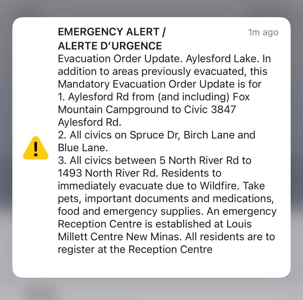 Aylesford Lake – In addition to areas previously evacuated, this Mandatory Evacuation Order Update is for