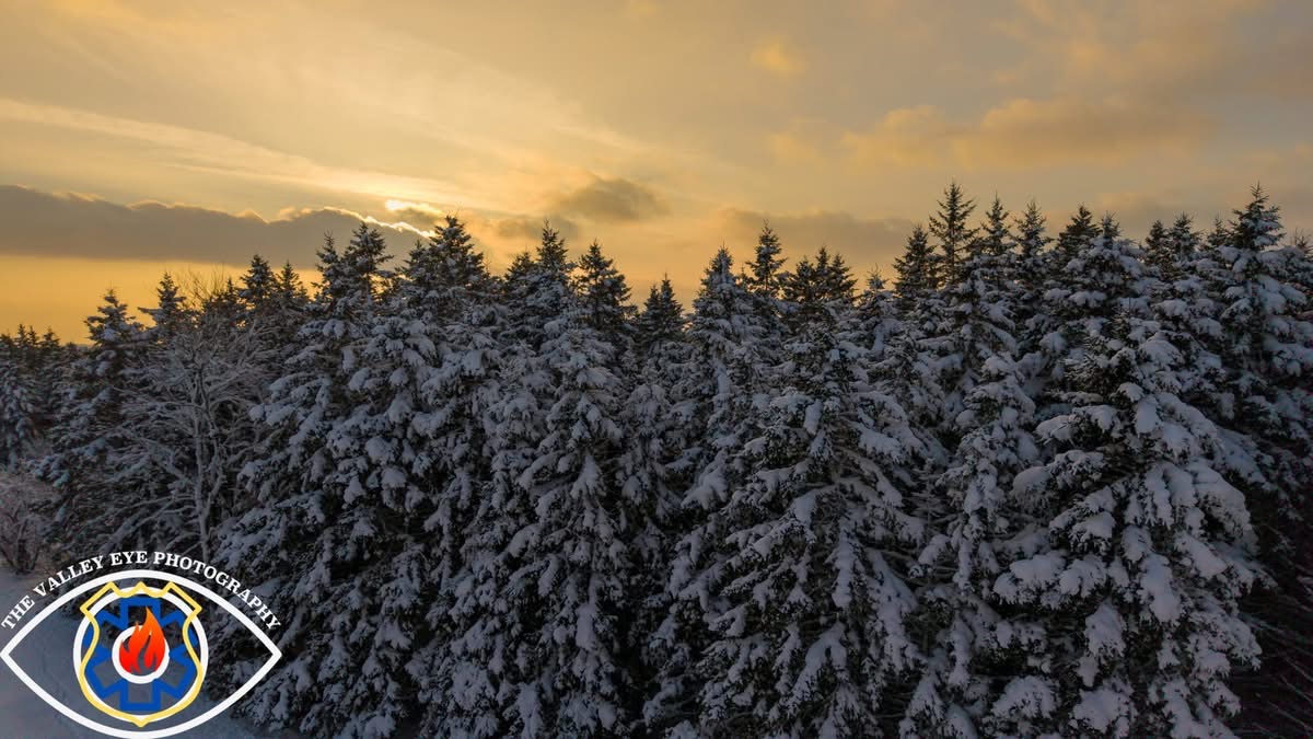 Just a few drone shots of the snow covering softwood trees along Highway 12 in South Alton today!  Milder temperatures are expected this week which will likely melt most of the snow off these softwoods in the coming days.  Adrian J.