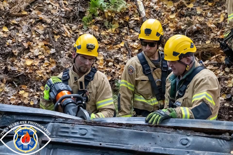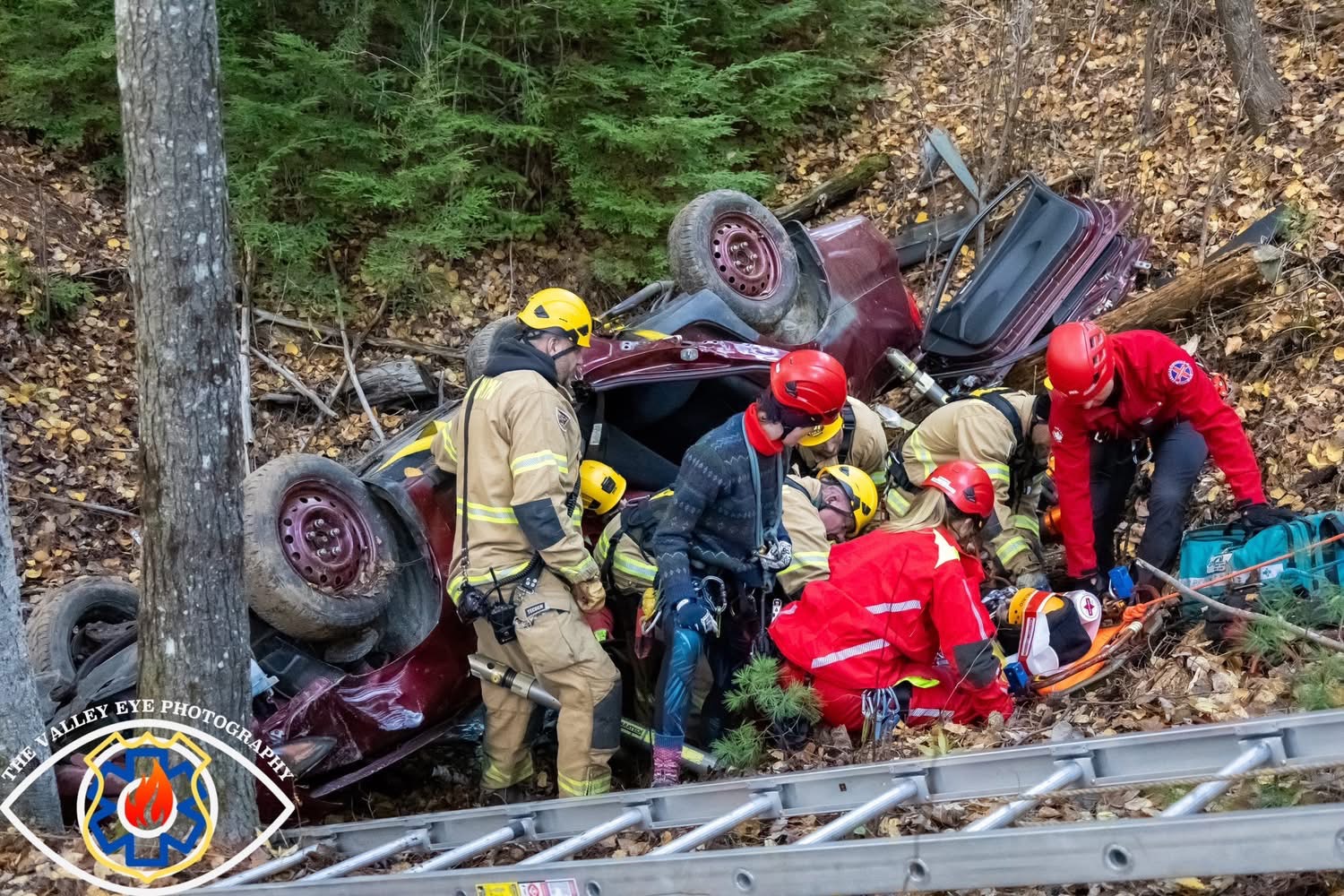 Both scenarios involved a mock motor vehicle accident, while also using rope rescue techniques to safety access the vehicle and bring tools to perform extrication.