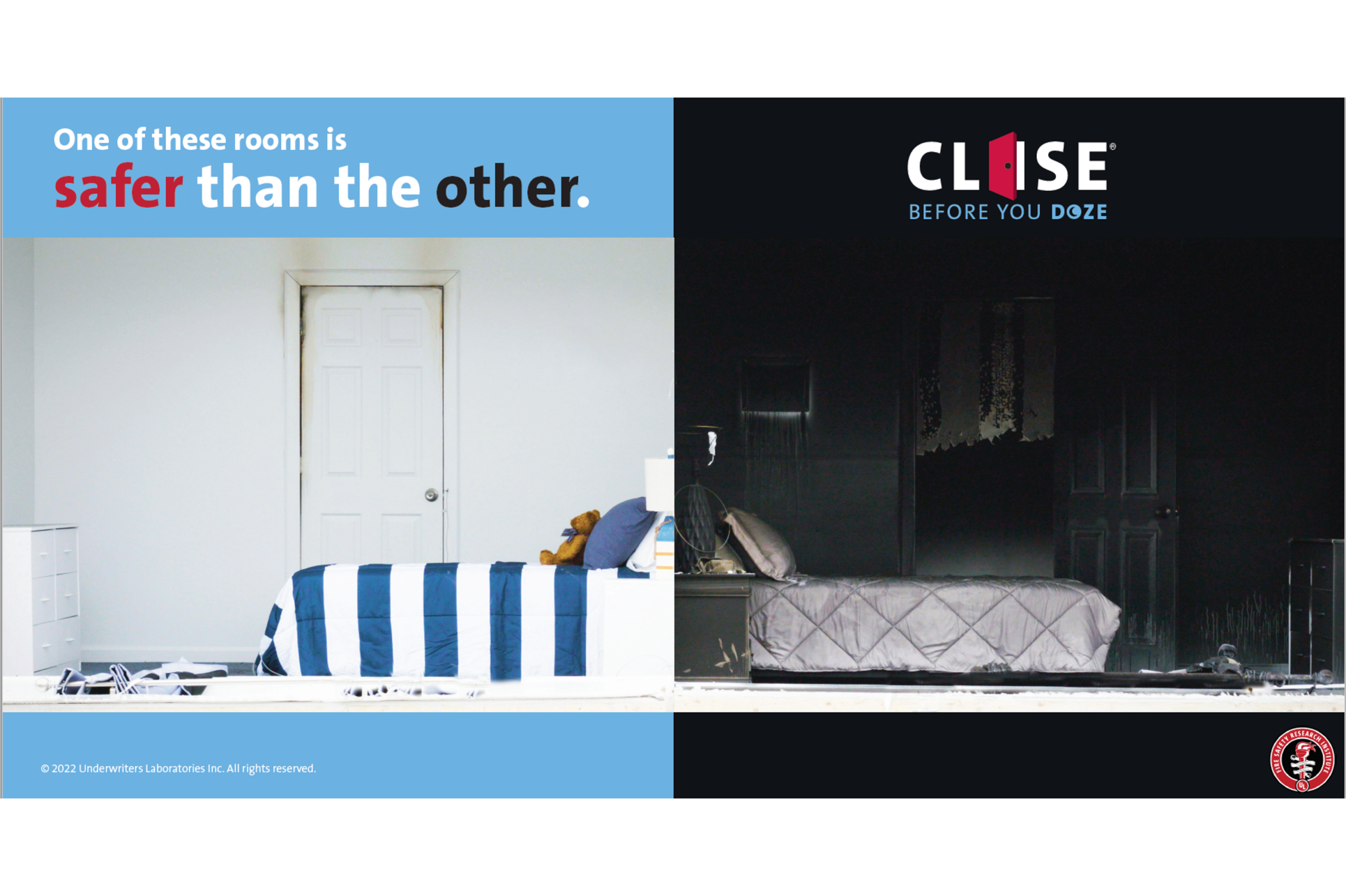 “Close Before You Doze” is actually a fire safety campaign led by the Fire Safety Research Institute (FSRI). It urges people to close bedroom doors while sleeping.