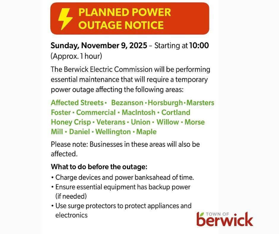 There will be a planned power outage impacting residents in the Town of Berwick this...