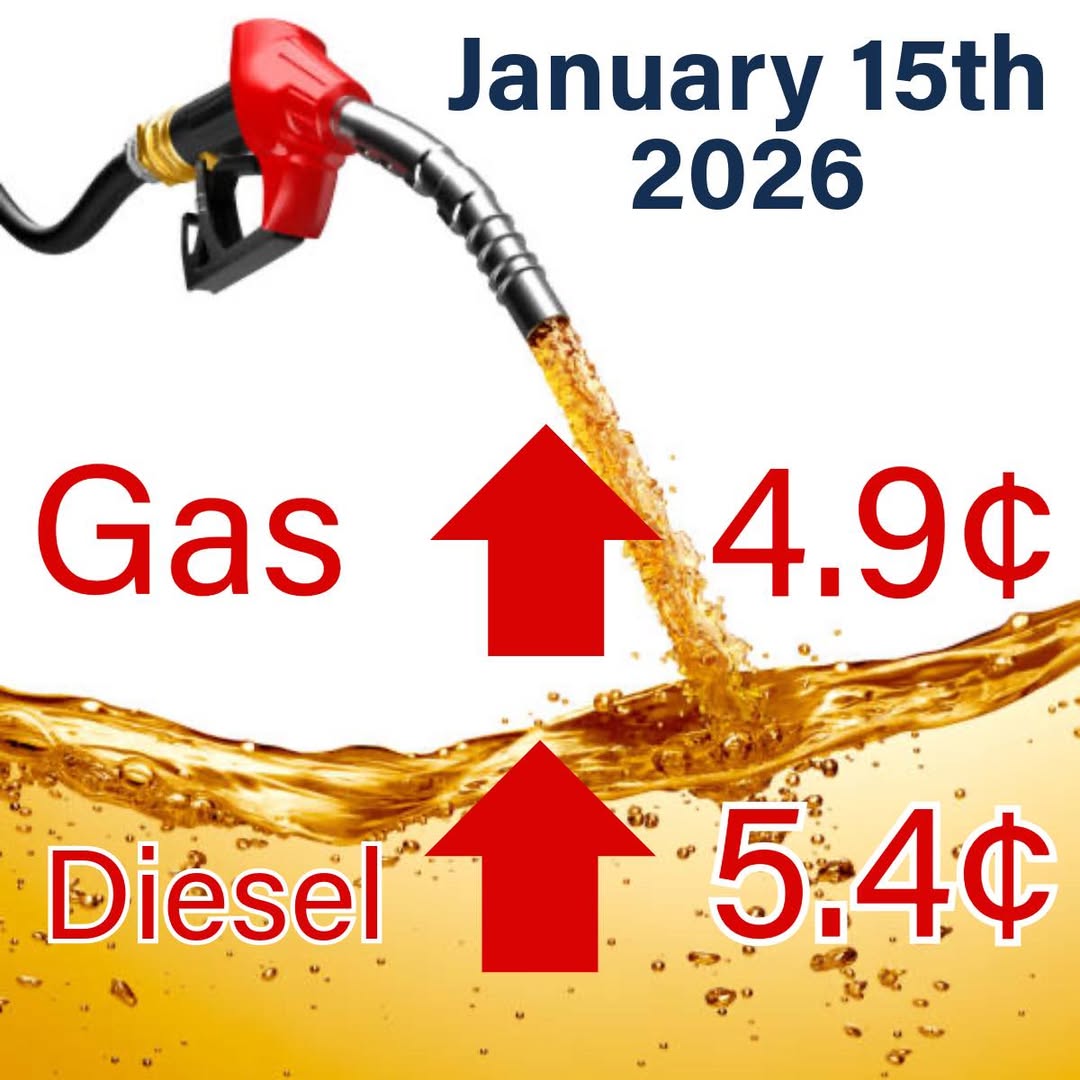 Gas Update via Joel Hirtle Local News January 15, 2026January 21, 2026thevalleyeyephotography Gas up 4.9 and diesel up 5.4