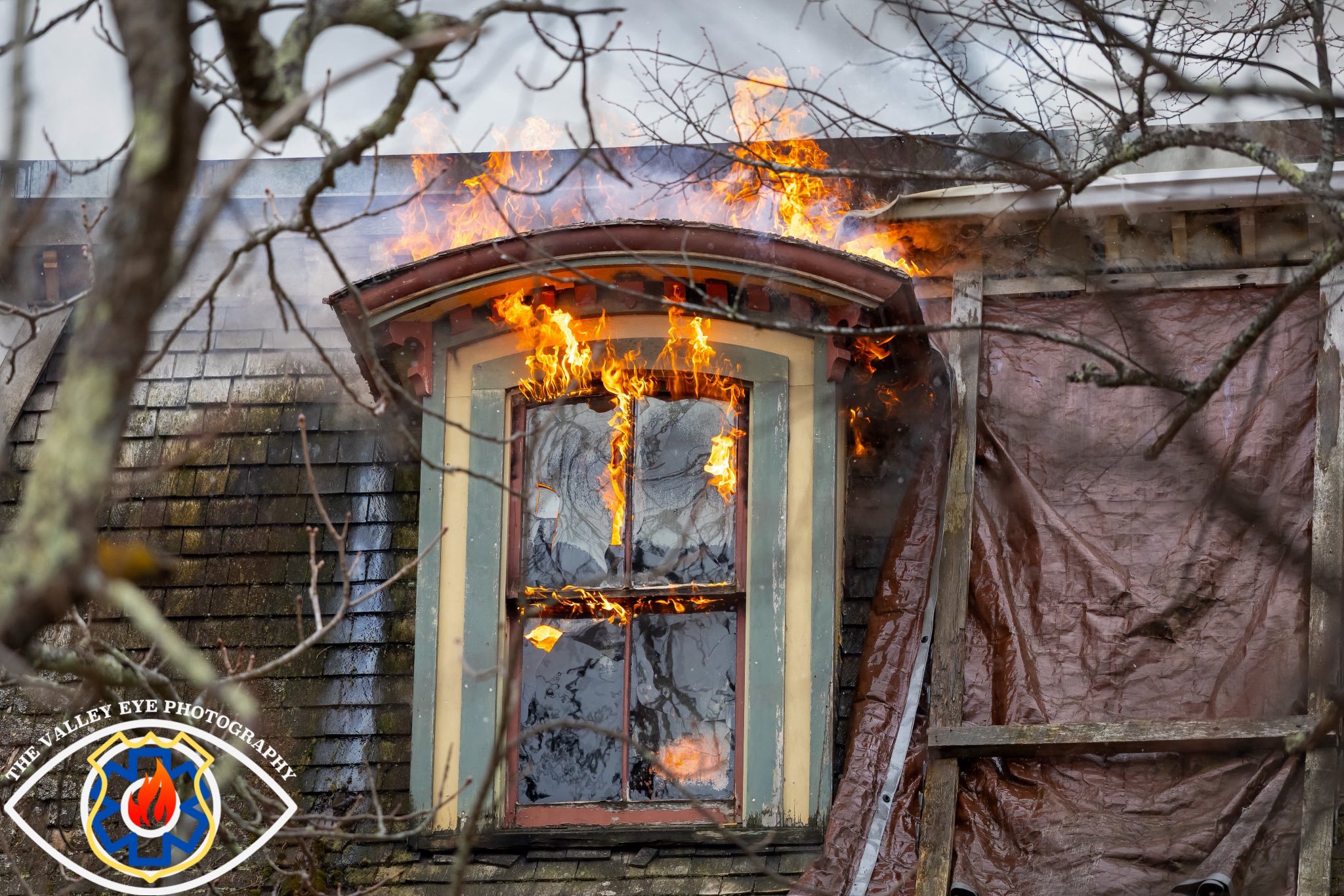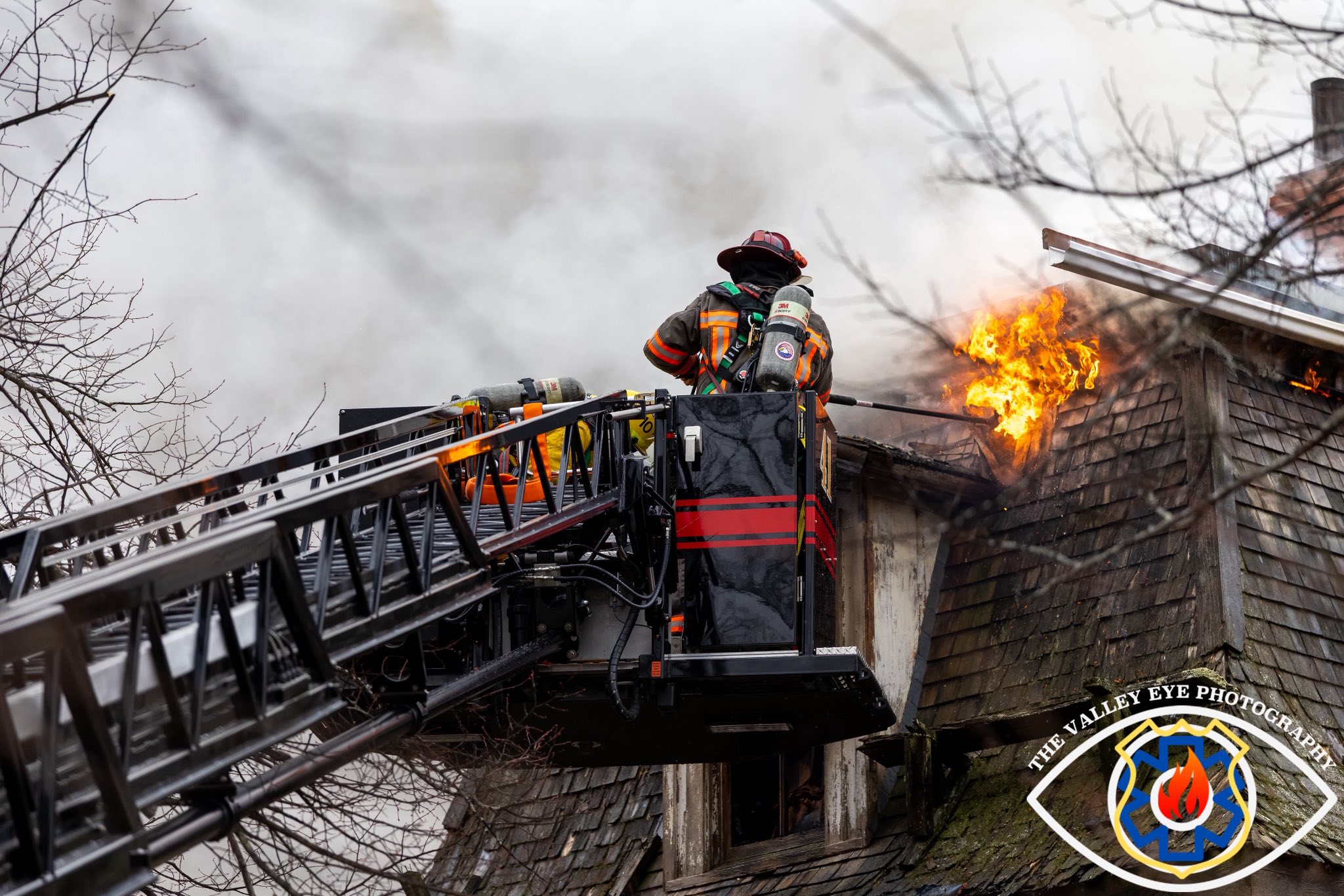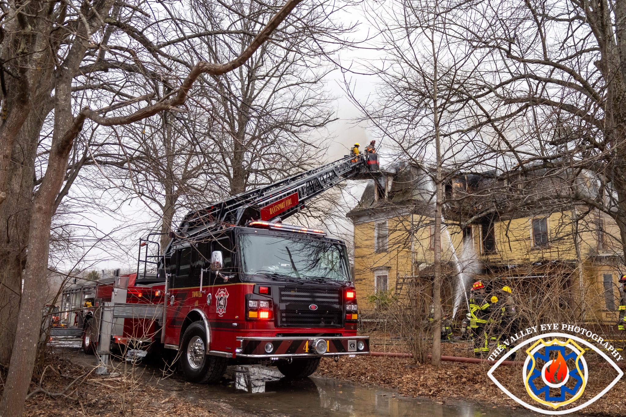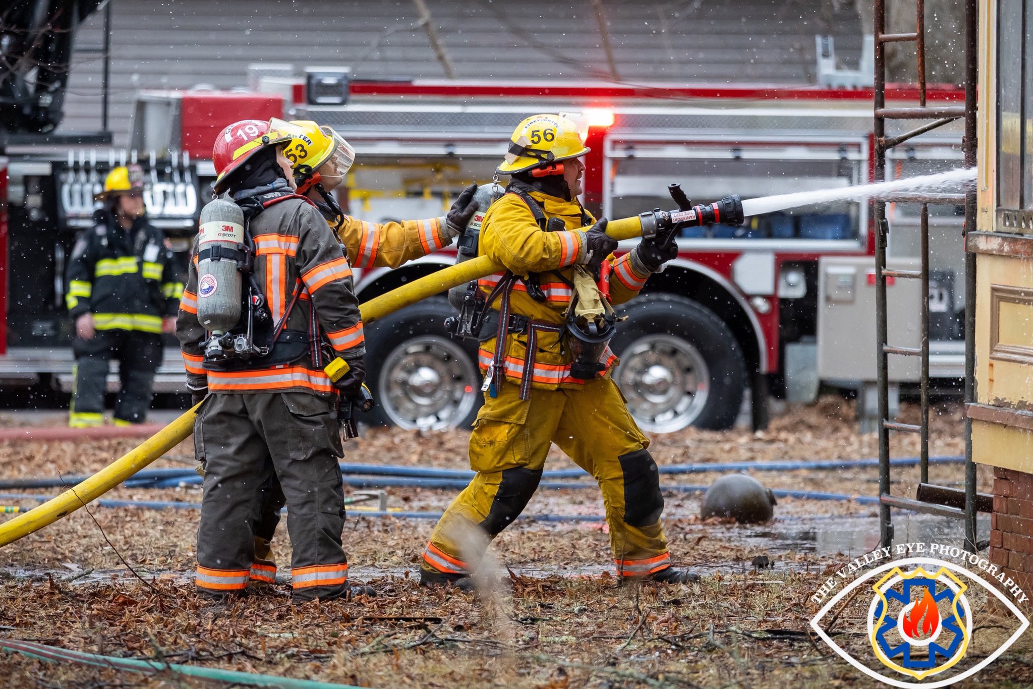 Two ladder trucks were deployed on both sides of the 3 story home, which required a significant amount of water. On top of water flowing from the ladder trucks, multiple working hand-lines were being used, beyond the capacity of nearby hydrants.