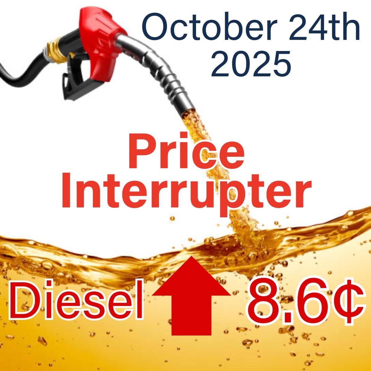 Price interrupter for diesel, jumping to 8.6 at midnight no change for gas...