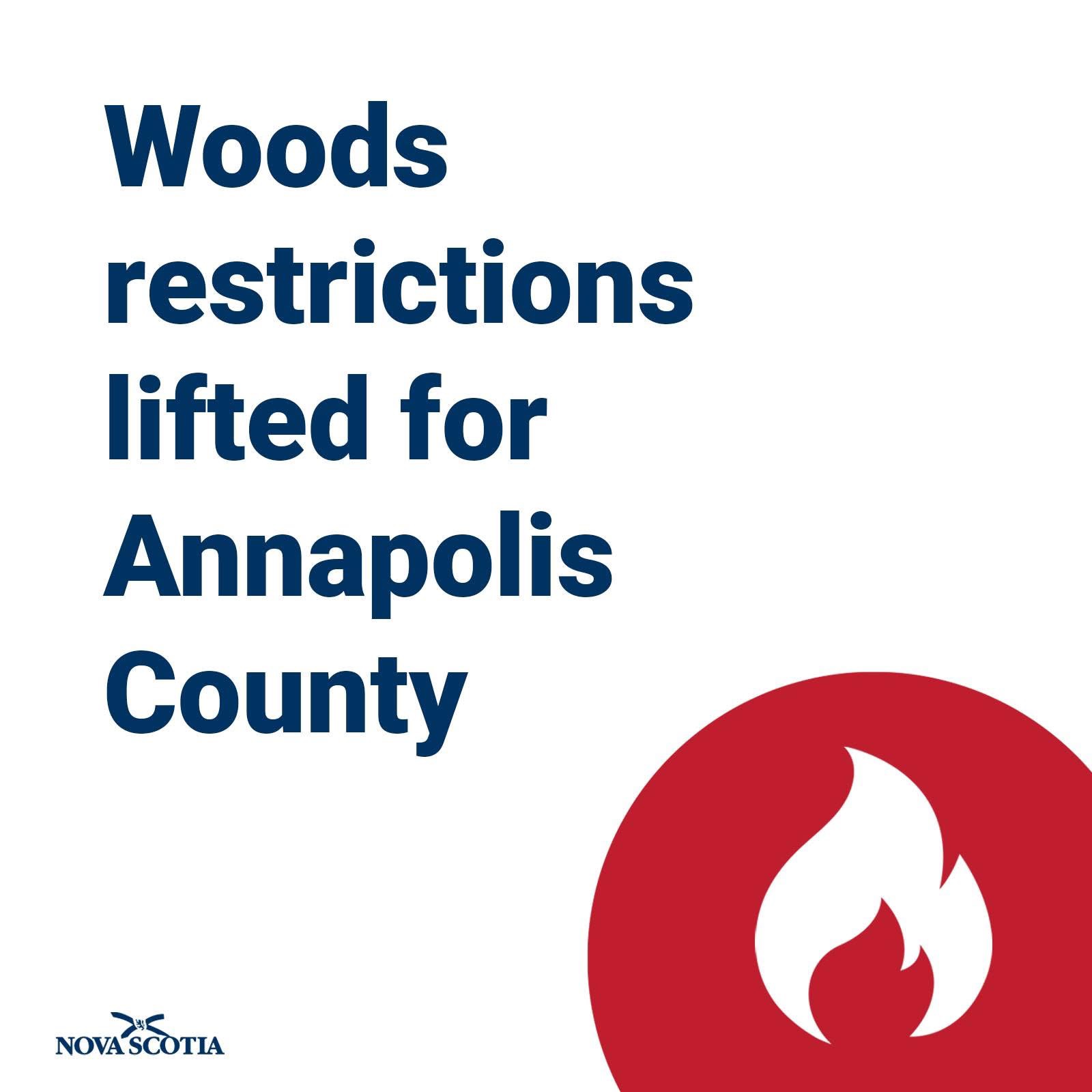 From the Province: With conditions improving, the burn ban and restrictions on travel and activity in the woods are lifted in Annapolis County effective 2 p.m. today, October 15. Daily burn restrictions remain in place provincewide until the extended wildfire season ends on October 31. The fine for violations is $25,000 The daily burn restrictions […]