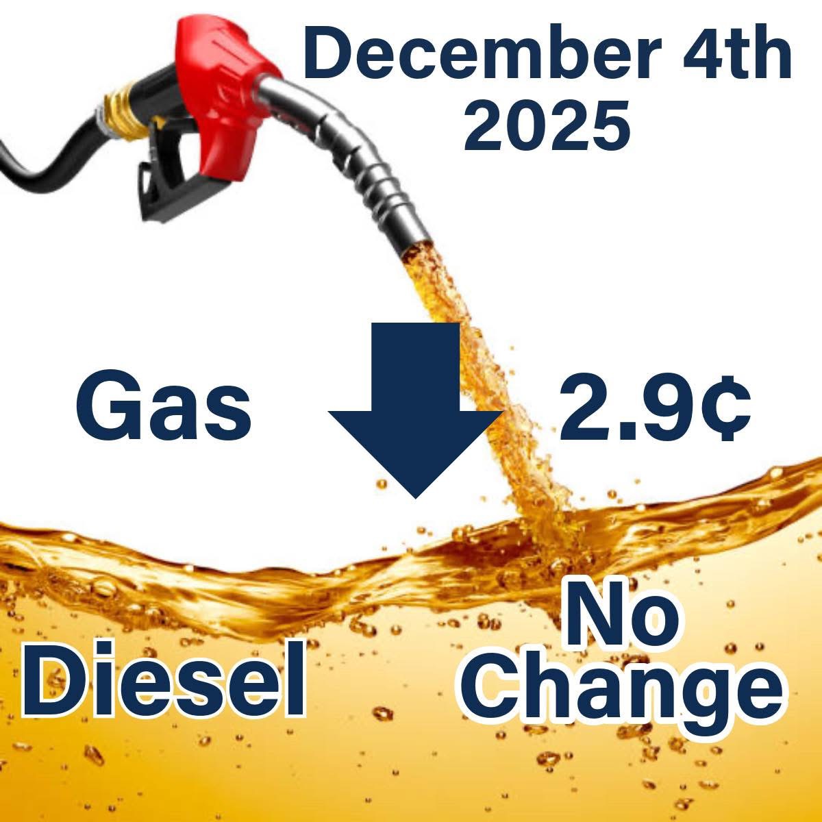 Continue ReadingGas down 2.9 & no change to diesel