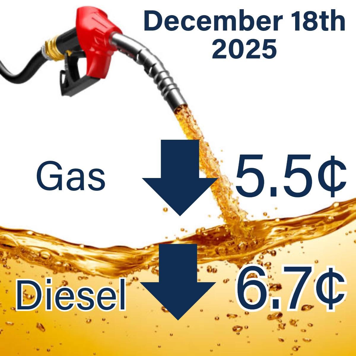 Continue ReadingGas Down 6.2 & Diesel Down 6.6 at midnight.