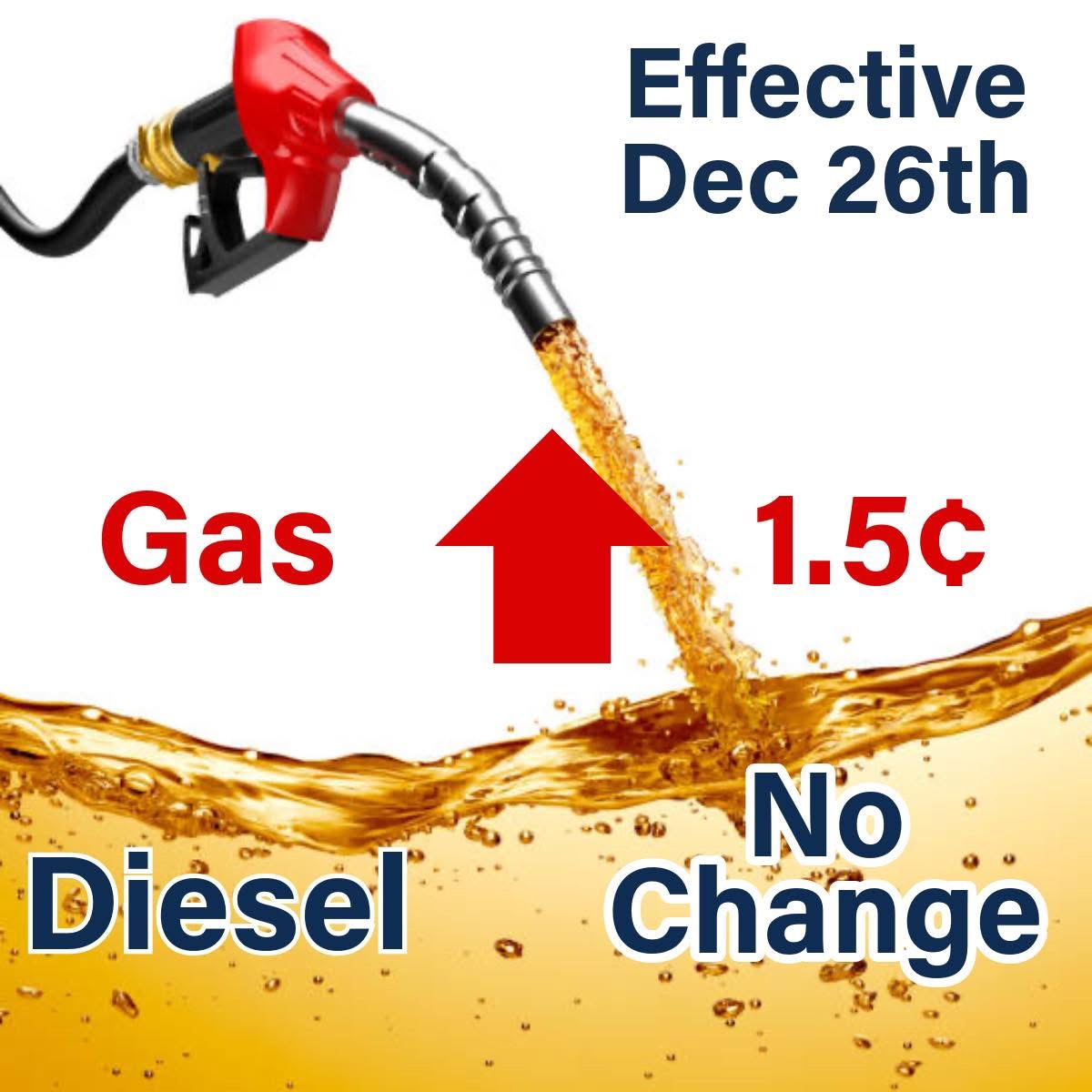 Continue ReadingDiesel up 4.7 and no change to gas