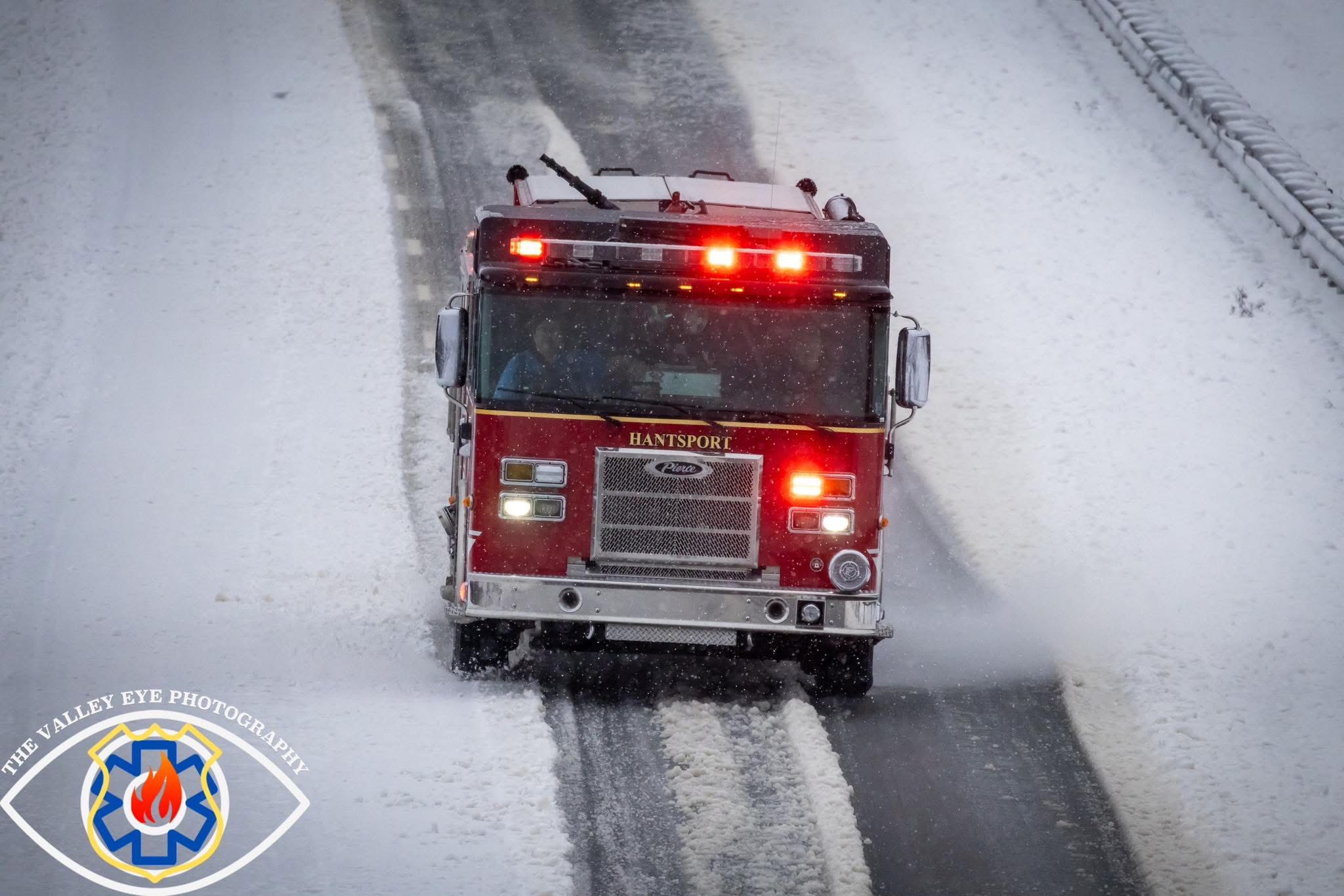 Hantsport Fire, Engine #12, clearing Highway 101 in Lockhartville going the wrong way due to a jack knifed transport truck last week.  This was done during a road closure.  Adrian J.