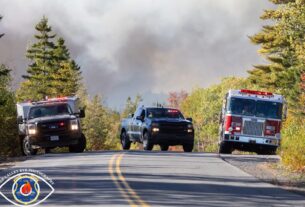 Resources today include 12 helicopters, and about 30 pieces of heavy machinery. Firefighters on site include 24 Department of Natural Resources (DNR), 18 Ontario, 40 Quebec, and 60 local. The next update will be around midday tomorrow.