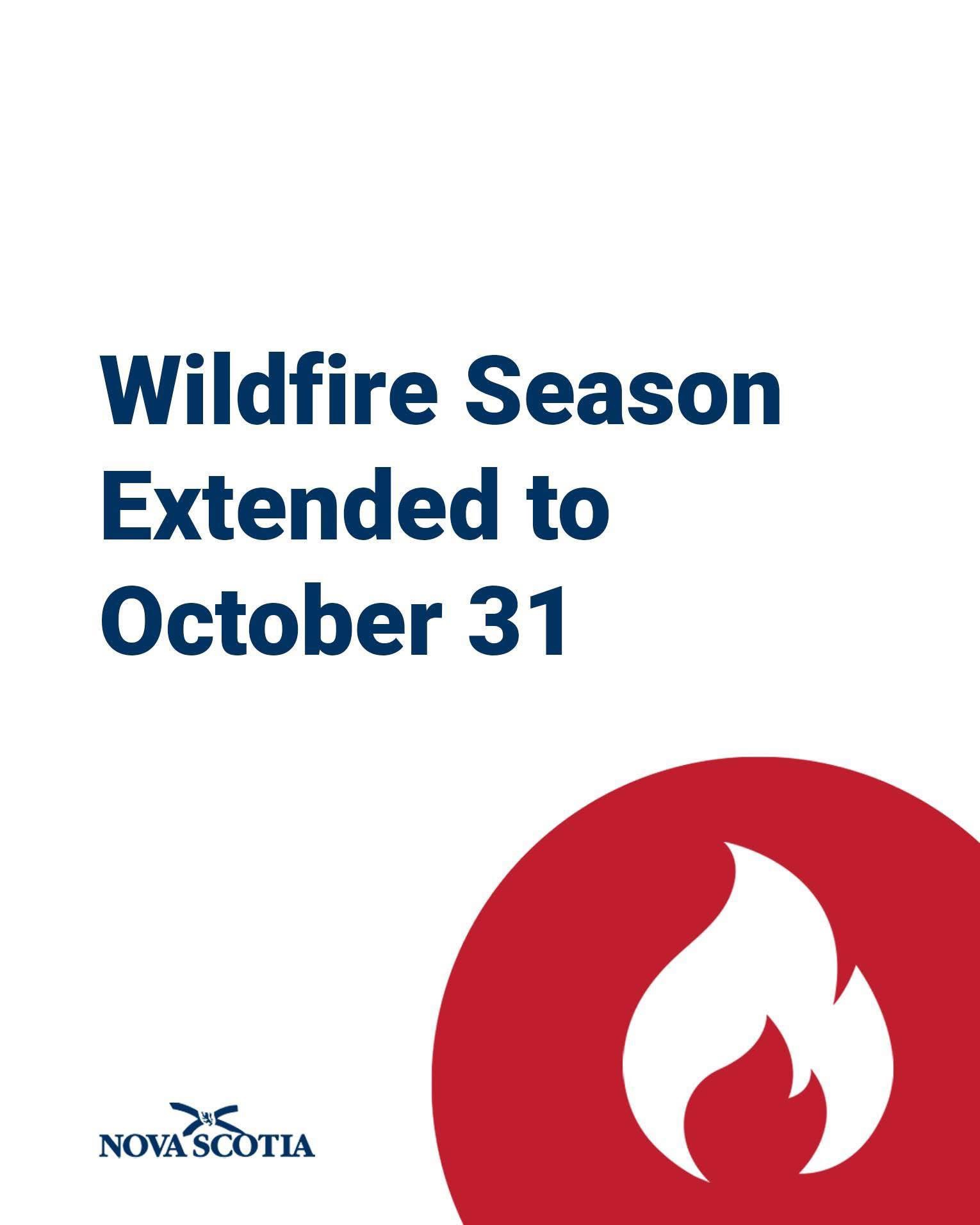 Due to continued fire activity in Nova Scotia, wildfire season is extended provincewide to October 31. Daily restrictions are posted to social media and at https://novascotia.ca/burnsafe/